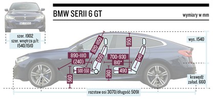 Te dane sa mocno niejasne. Po co mierzyc wysokosc od tylnych soedzen pionowo w gore a nie wzdloz siedzieska. Nie ma tez nic o miejscu z boku glowy od szyby. Kanapa w bmw z tylu 3cm wyzej od podlogi to i na nogi potrzeba potem miej miejsca. Tak czy siak wolalbym wsiasc do gt i ocenic choc juz sie zniechecilem tym mysleniem o bmw. Bmw 5/6 sa w pierwszej trojce najbardziej awaryjnych aut wg noergo raportu tuv i to na przestrzeni roznych lat