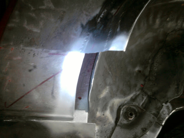 zabrałem się za nadkola. Ponieważ chce trochę szersze i generalnie utrzymać auto w oldschoolowym (metalowym) klimacie użyłem metalowe reperaturki z golf'a mk 1. Najpierw przymiarka ![]() ![]() ![]() ![]() To mi zajęło najwięcej czasu... potem klasycznie primerem ![]() ![]() ...i spawanie ![]() ![]() ![]() ![]() lekkie mody aby ładnie wpasować... ![]() ![]() oraz blachę pod sideskirtem, która mi trochę uciekła ![]() ![]() ![]() ![]() ...i wykończenie pod ss ![]() ![]() ![]() ![]() tutaj się trochę rozpędziłem i musiałem dodać jeszcze jeden kawałek blachy aby było ok. Co prawda jest to pod progiem, ale jakoś nie pasowało mi to. Zdjęcia tej akcji wieczorem. No i jeszcze dolna część nadkola ![]() ![]() ![]() Generalnie nie bardzo mi się podobało wykończenie "ostrą" blachą, więc dorobiłem kawałek, który w miarę będzie spełniał funkcję "ochrony" opony w razie jakiś nieszczęść. Zostało jeszcze połączyć reperaturkę z ori nadkolem w środku, wykończyć tylną część i finito! ...z tą ćwiartką -------------------- -------------------------------------------------------